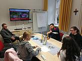 Insgesamt waren wir dann eine Gruppe von sechs Personen, die sich am Dienstagmorgen um 7.15 auf den Weg von Fulda nach Paderborn machte, um das dortige Bonifatiuswerk zu besuchen. Vor Ort begrüßten uns Herr Thomas Twents und Herr Daniel Born mit warmem Kaffee und Schokolade. Nachdem jeder einen Platz gefunden hatte und einigermaßen aufgetaut war, begann Thomas Twents mit einer für uns vorbereiteten Präsentation, mit der er uns die Arbeit des Bonifatiuswerks näherbrachte. Sehr interessant waren auch das Wirken und die Projekte des Bonifatiuswerks in Skandinavien und im Baltikum. Vor allem die sich die dadurch bietenden Möglichkeiten, diverse Reisen zu den Pfarrgemeinden und Projekten in und außerhalb Deutschlands zu veranstalten, waren sehr ansprechend und trafen auf große Begeisterung. Doch auch die Vorstellung von hauseigenen Materialien, wie z.B. Zeitschriften und Prospekten, mit denen man eigenständig die Gemeindearbeit voranbringen und inhaltlich erweitern kann, stellten eine wahre Bereicherung dar. Herr Twents legte uns vor allem ans Herz, sich jederzeit bei ihm melden zu können, sollten wir Fragen zu eigenen innovativen Projekten haben und/oder Unterstützung brauchen, da wir beim Bonifatiuswerk immer auf offene Ohren träfen und sie gerne Projekte unterstützen wollen.