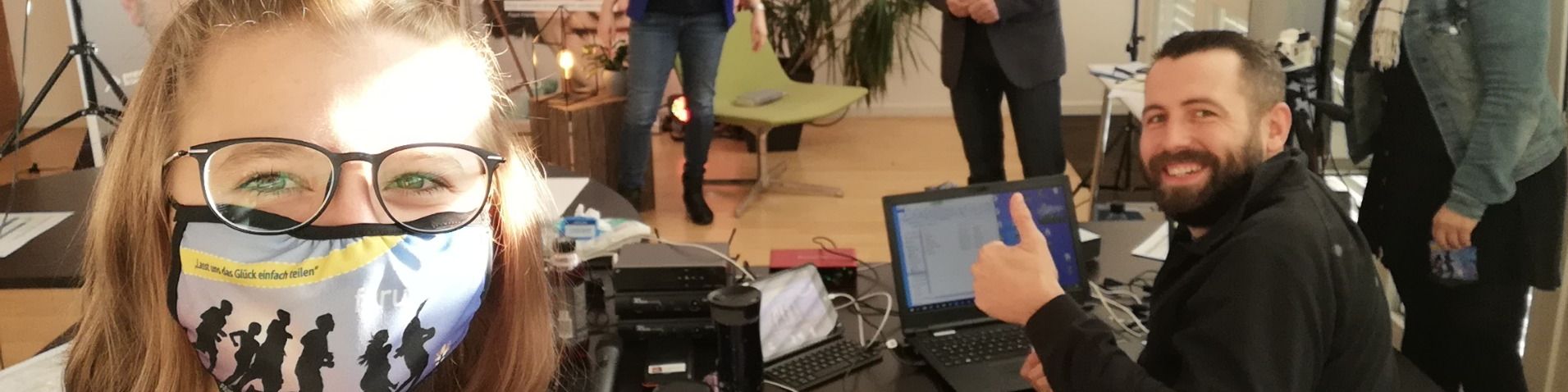 Durch die Umstellung dieser Veranstaltung auf eine rein digitale Version bekamen auch wir vom Jugendreferat eine neue Aufgabe, nämlich die Technik zu organisieren. Was am Ende zwar sehr professionell aber doch recht selbstverständlich wirkte, war das Ergebnis von etwa einer Woche Grübeln und Ausprobieren. Doch am Ende haben sich die Mühen mehr als gelohnt. So konnte Paul Kowalski gemeinsam mit Marie Chowanietz, Bernadette Wahl und Robert Eberle vor Ort die Technik verwalten, während in Hanau mit Nicola Krack und Lea Hirn der technische Support bereitstand, um den Teilnehmern bei jeglichen Fragen helfend zur Seite zu stehen.