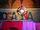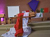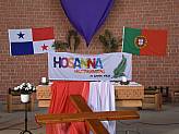 Schon am Nachmittag des Palmsonntag hatte das Hosanna-Team mit den Vorbereitungen in der Kirche begonnen. Liebevoll wurde dekoriert und aufgebaut, damit die Teilnehmenden und die Zuschauer in das Weltjugendtagsfeeling eintauchen konnten, das diese Veranstaltung ausmacht. Denn Hosanna ist der „kleine“ Weltjugendtag, der zwischen den großen, internationalen Weltjugendtagen im Bistum Fulda gefeiert wird.