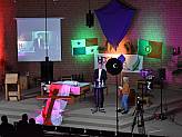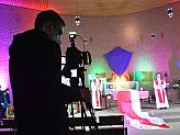 Ein kleines Redaktionsteam hatte im Vorfeld ein abwechslungsreiches Vorprogramm zusammengestellt. Im „antons - meat and eat“ hatte sich das Team mit viel Technik auf seine Gäste vorbereitet und verschiedene Beiträge aufgenommen unter anderem die Katechese von Bischof Michael Gerber zum Motto der Veranstaltung „Steh auf!“ und zwei Zeugnisse junger Menschen darüber, wie ihr Glaube ihr Leben prägt. Dieses Vorprogramm konnten die Teilnehmenden zu Hause am Bildschirm und in St. Lukas auf der Leinwand verfolgen. Im YouTube-Chat gab es die Möglichkeit, Fragen einzusenden, die der Bischof anschließend beantwortete.