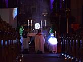 In einem zweiten Teil des Gebetsabends wurde ein weiteres Zeichen für die Gegenwart Jesu zum Altar gebracht. In Gestalt der Heiligen Kommunion wurde das Allerheiligste zum Zentrum der versammelten Gemeinde. Die Teilnehmenden waren eingeladen, in der Gegenwart Jesu da zu sein und sich anschauen zu lassen. Wer wollte, konnte eine Kerze anzünden und vor das Allerheiligste stellen oder das, was ihm auf dem Herzen lag auf einen Zettel schreiben und in eine Gebetsbox werfen. In den Seitengängen des Doms standen Mitarbeiter des Bistums bereit, um den Jugendlichen ein Gespräch zu ihren Anliegen, ihren Fragen und ihrem Glauben anzubieten. Wer wollte, konnte auch zu einem Priester gehen und das Sakrament der Versöhnung empfangen oder sich segnen lassen.
