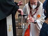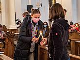 Bereits wie im letzten Jahr konnte keine Fuldaer Delegation nach Wien – wie die 20 Jahre zuvor - zur zentralen Aussendung reisen. Nur eine kleine Delegation brachte das Friedenslicht auf verschiedenen Autorouten nach Deutschland. Wie im Jahr 2020 von einem Parkplatz bei Rüsselsheim holten es die Pfadfinder Felix Schneeweis (23) (DPSG - Stamm Heilig Kreuz Ahl/Salmünster / Stamm St. Martin Bad Orb / Roverreferent DV Fulda) und Linus Henze (22) (DPSG – Stamm Barbarossa Rodenbach) ab und brachten es per Auto sicher nach Fulda. Gemeinsam mit Pfadfinder Silas Jöckel (9) vom VCP durfte es dann Felix Schneeweis auch im Gottesdienst in den Altarraum tragen und die Verteilung starten.
