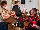 Zur Aussendung betrachtete Bruder Pascal die Friedenslicht-Kerze. Von der Flamme gingen Strahlen der Hoffnung und der Wärme aus: „Diese Strahlen scheinen zu jedem und ein Strahl scheint auch zu dir zurück.“ Anschließend verteilten die Lichtträger*innen des VCP und der DPSG sowie Bruder Pascal Sommerstorfer und Pfarrer Jörg Scheer das Friedenslicht an die anwesenden Menschen. Auch Vertreter der jüdischen Gemeinde und der muslimischen Gemeinde in Fulda konnte als Gäste in der Aussendungsfeier begrüßt werden und das Friedenslicht über die Religionsgrenzen hinweg vom evangelischen und katholischen Priester entgegennehmen.