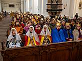 Im Dom erklingen die Melodien des Jugendkathedralchors unter der Leitung von Domkapellmeister Franz-Peter Huber. Weihrauch liegt in der Luft, als der Bischof gemeinsam mit zahlreichen Messdienern einzieht. In der Messe werden zum Schluss Weihrauch und Kreide aber vor allem die Kinder gesegnet.