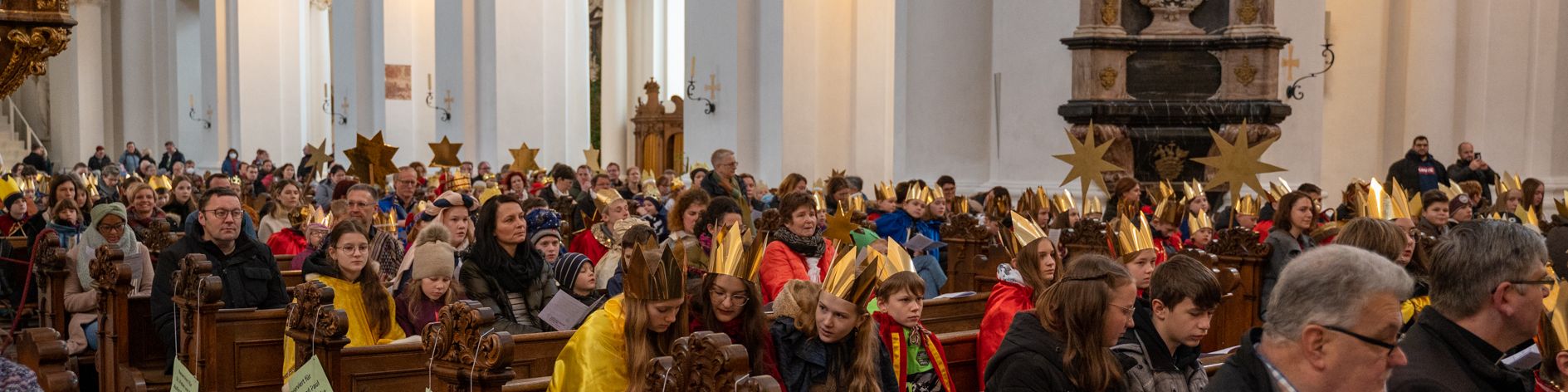 „Es ist ein wunderbares Bild, so viele funkelnde Kronen und Kleider in unserem Dom zu sehen. Ihr seid für viele wie ein Stern in der Nacht“, lobte Bischof Dr. Michael Gerber das großartige Engagement der Mädchen und Jungen. „Mit eurer Aktion setzt ihr ein Zeichen und tragt eine wichtige Botschaft hinaus in die Welt.“ Für die Kinder ist das Sternsingen eine prägende Erfahrung. „Sie lernen bereits in jungen Jahren, dass sie gemeinsam einen Beitrag zum Gemeinwohl leisten können und damit ganz vielen Kindern auf der Welt helfen. Das ist eine zentrale und wichtige Erfahrung, die unsere Gesellschaft braucht“, so Bischof Gerber.