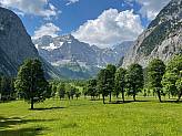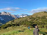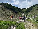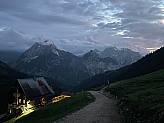 Am nächsten Morgen ging es dann Richtung Süden weiter in den östlichen Teil des Karwendelgebirges. An der Gramai Alm konnte pünktlich um 10:00 Uhr der Aufstieg zur ersten Hütte starten. Bis auf wenige Regentropfen am Gipfelkreuz des Gramai Hochlegers hat das Wetter perfekt mitgespielt, was in den Bergen keine Selbstverständlichkeit darstellt. Die erste Etappe wurde mit wundervollen Ausblicken, Kuhglockengeräuschen, einem deftigen Abendessen und einem lustigen gemeinsamen Abend mit Gitarren-Musik auf der Hütte entlohnt.