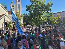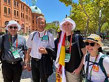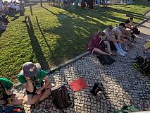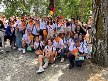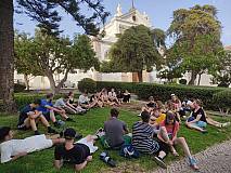 Der Dienstag hat mit dem Frühstück in unserer Gastpfarrei „Paroquia de São João de Deus“ begonnen. Die Gestaltung der Zeit außerhalb der Hauptprogrammpunkte ist jeweils den Kleingruppen überlassen worden. So sind beispielsweise die Christusstatue „Christo Rei“, die Altstadt Lissabons und der Strand, Gottesdienste wie z.B. der Pfadfindergottesdienst oder Wallfahrtsorte in Portugal wie Fatima innerhalb der Woche besucht worden. Außerdem ist das deutsche Pilgerzentrum in der deutschen Botschaft täglich geöffnet gewesen, welches ein vielfältiges Angebot für Pilgerinnen und Pilger hatte. Darunter gehören eine eingerichtete Kapelle zum Gebet, ein Raum der Stille, ein Garten mit Schatten und Programmpunkten zu „Tänzen aus aller Welt“, ein Auditorium zu verschiedenen Vorträgen und Diskussionen wie beispielsweise „Ask the bishop“, also eine Fragerunde mit verschiedenen deutschen Bischöfen, und die Möglichkeit, sein Handy aufzuladen. Auch unser Diözesanbischof Dr. Michael Gerber hat sogar die verschiedenen Kleingruppen unseres Bistums innerhalb der Woche begleitet, sodass er näher an den Pilgerinnen und Pilgern seines Bistums war.