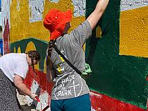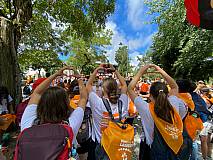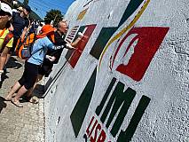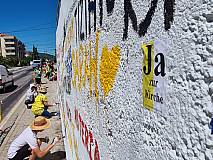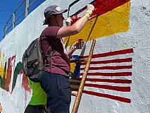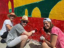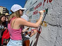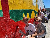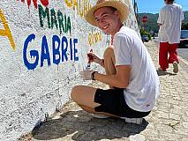 Heute durften wir unsere Spuren in Tarouca hinterlassen. Gemeinsam mit den Jugendlichen aus Tarouca und allen Pilgern haben wir ein großes Wandbild als Erinnerung an den Weltjugendtag und die Tage der Begegnung gestaltet.