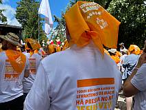 Nachdem sich alle üblicherweise mit dem Frühstück gestärkt haben, haben wir mit unserer dritten und letzten Katechese gestartet, die den Charakter eines „Abends der Versöhnung“ gehabt hat. Deswegen ist „Barmherzigkeit“ das Thema gewesen. Dazu hat es einen Beitrag der Katecheten gegeben mit der Fragestellung, wie Gott uns sieht bzw. wie wir selbst uns sehen. Diözesanbischof Michael Gerber hat an dieser Frage in seiner Predigt im anschließenden Gottesdienst angeknüpft. Doch zuvor hat es eine Stationenarbeit gegeben, wo man u.a. Fürbitten oder Briefe geschrieben hat, die Taufe erneuern konnte oder sich über die Berufung erkundet hat. Nebenbei ist natürlich auch die Beichte bzw. auch Eucharistische Anbetung angeboten worden. Auch nach der Katechese haben sich die Gruppen den Tag selbstständig gefüllt. So ist eine Gruppe an den Strand gefahren bzw. eine andere zur Christusstatue „Christo Rei“. Der zentrale Punkt ist heute der Kreuzweg mit dem Papst gewesen, der am gleichen Platz stattgefunden hat, wo er begrüßt worden ist. Die 14 Stationen des Kreuzwegs haben sich hauptsächlich auf die gegenwärtigen Lebenssituationen der heutigen Jugend bezogen. So sind Flucht und Vertreibung, mangelhafter Zugang zur Bildung und Einsamkeit bspw. Themen gewesen.