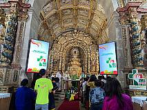 Nach dem Morning-Prayer und den ersten Workshops haben wir zunächst dem Bürgermeister von Tarouca einen Besuch abgestattet, der sogar für alle Pilgernde zur Begrüßung live Gitarre gespielt hat. Weiter ging es mit folklorischer Musik und traditionellen Tänzen, die uns direkt begeistert und angesteckt haben. Über den Nachmittag verteilt haben wir außerdem unser eigenes Bola-Brot zubereitet und gegessen, uns mittelalterliche Gebäude, wie z.B. die hier regional sehr bekannte Klosterkirche Sao Joao der Tarouca angesehen und die bergige Landschaft genießen können. Vor dem Abendessen in einer Schule gab es noch die Möglichkeit, am Fluss bei einem kleinen Picknick, Musik und Spaß zu entspannen. Zum Abschluss des Tages haben wir mit allen anderen Pilgernden zusammen Messe in der Stadtkirche gefeiert und diese mit der WJT-Hymne abgerundet