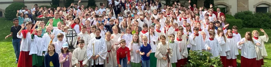 Um 15:00 Uhr trafen sich alle für den großen Einzug in die Klosterkirche. Die heilige Messe wurde von den anwesenden Patres und Pfarrern gemeinsam mit den 250 Messdienerinnen und Messdienern gefeiert. Es war ein bewegender Moment, alle Minis in ihren Gewändern gemeinsam in die Kirche einziehen zu sehen.