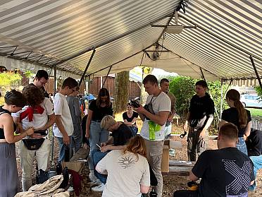 Der Tagesablauf in Taizé ist bewusst schlicht gehalten. Jeden Morgen versammelten wir uns in kleinen Bibelgruppen, um uns über Bibeltexte und wichtige Fragen des Lebens auszutauschen. Themen wie Liebe, Vergebung oder das Zuhören standen im Fokus, und der internationale Austausch mit Jugendlichen aus ganz Europa war eine besondere Bereicherung. Am Nachmittag hieß es dann: Mit anpacken! Ob beim Zeltaufbau, in der Küche oder bei der Essensausgabe – jede*r hatte seine Aufgabe und konnte so einen Beitrag zur Gemeinschaft leisten.